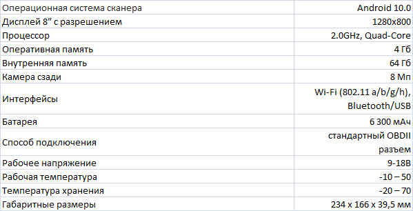 Операционная система Android 10.0, 4 ГБ памяти и 64 ГБ памяти обеспечивают более быструю диагностику.