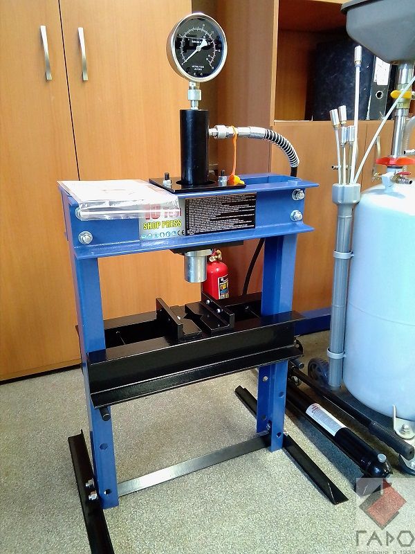 Пресс гидравлический 0500-1 ручной, гаражный, настольный для автосервиса. Предназначен для запрессовки/выпрессовки подшипников и т.п. в условия автосервиса, мастерских по ремонту лодочных моторов и т.п. Усилие 10 тонн, манометр в комплекте.