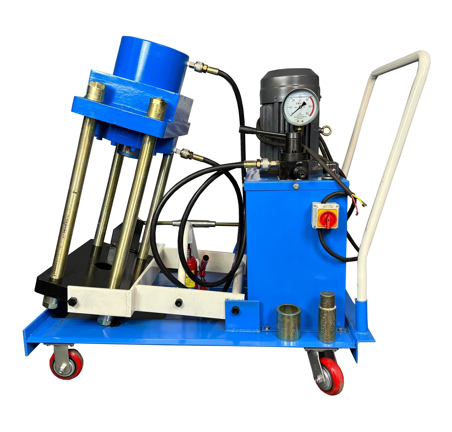 Надежные прорезиненные колеса позволят перемещать шкворнедав по любой поверхности