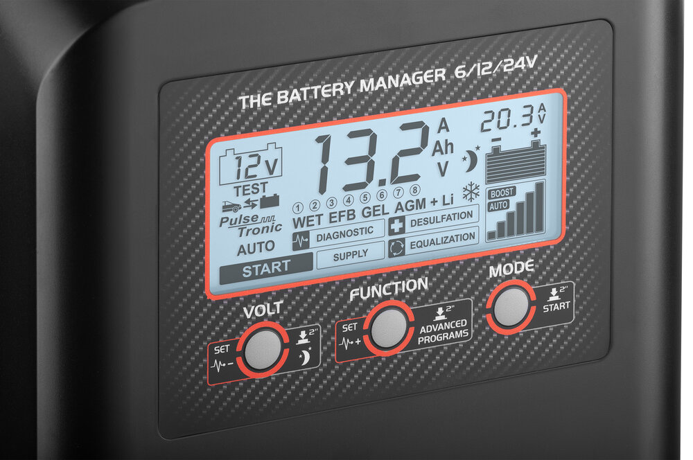 Выбор режима: ручного, автоматического, быстрого заряда BOOST и быстрого пуска.